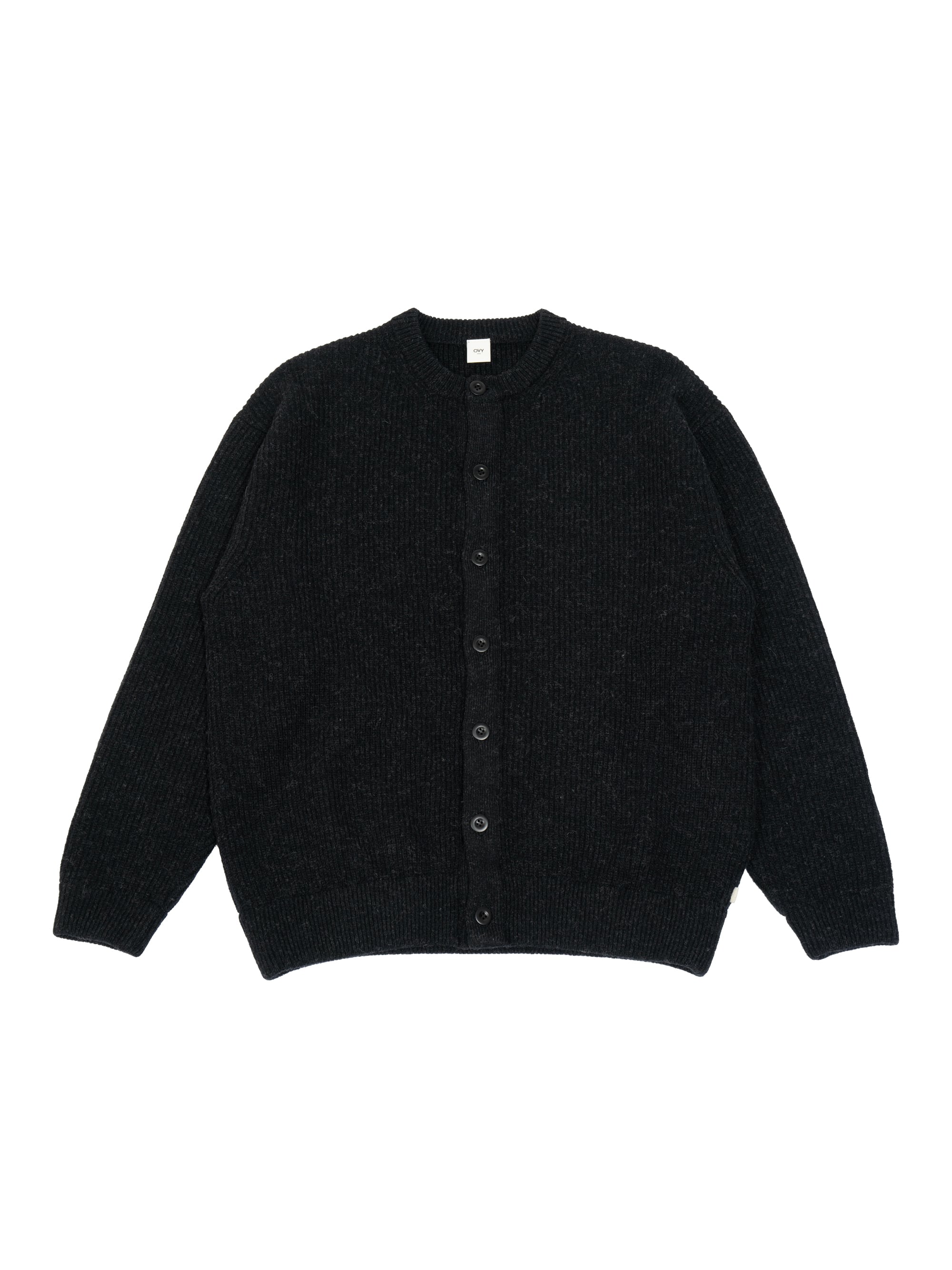 Super Comeback Lamb Wool Crew Neck Cardigan (black)