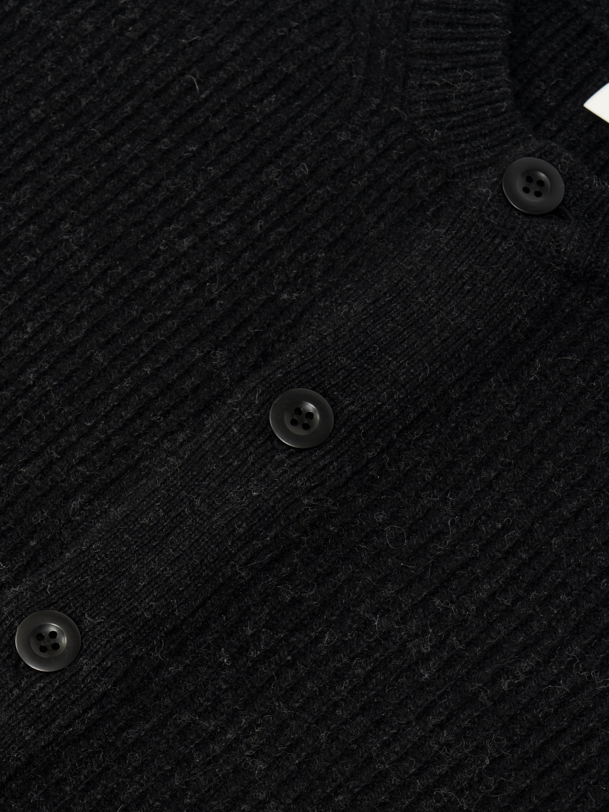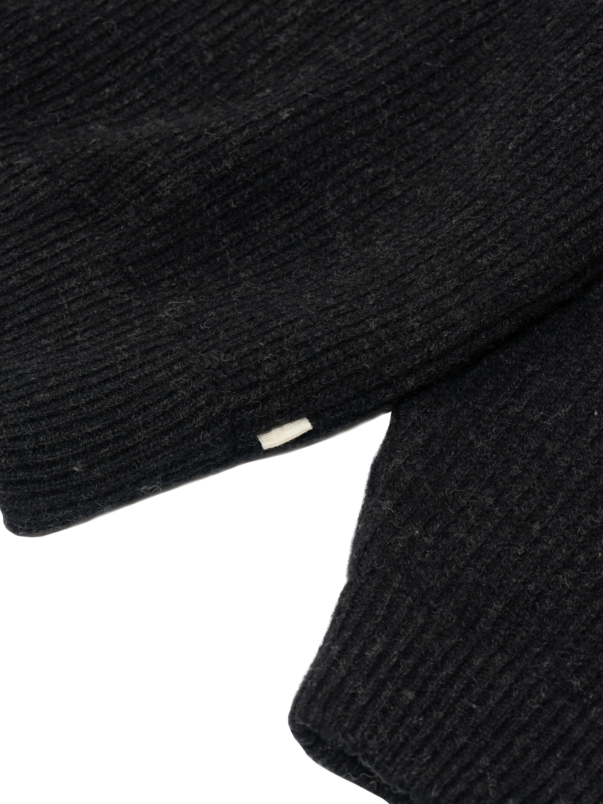 またリブ編みにすることで柔らかな印象を持ち、ボタンは天然のナットボタンで風合いも良くウールに非常に馴染むデザイン。