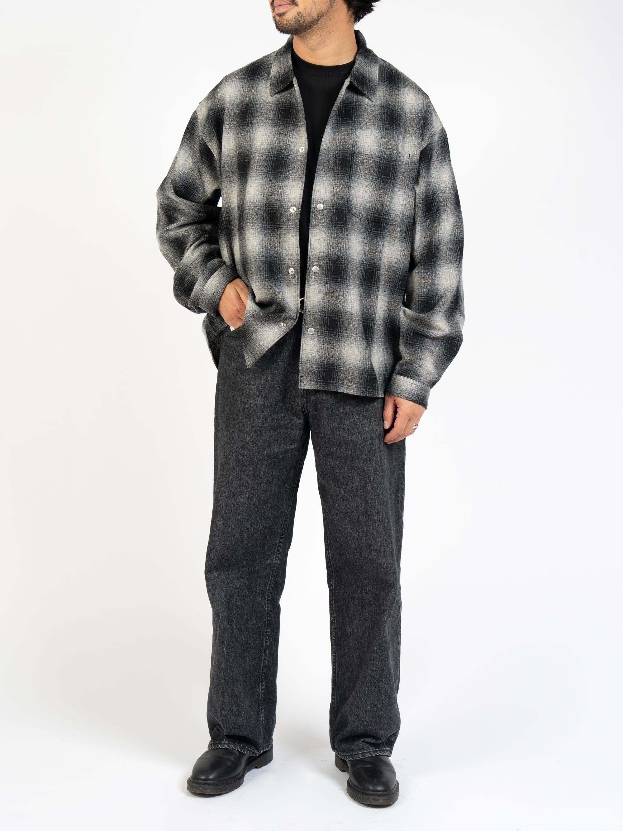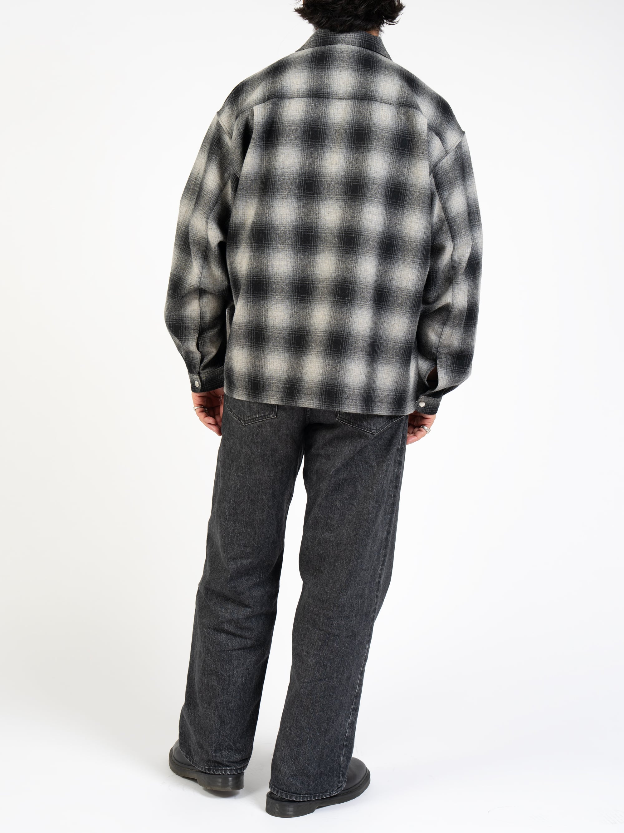 Ombre Check Shirt Jacket (white×black)