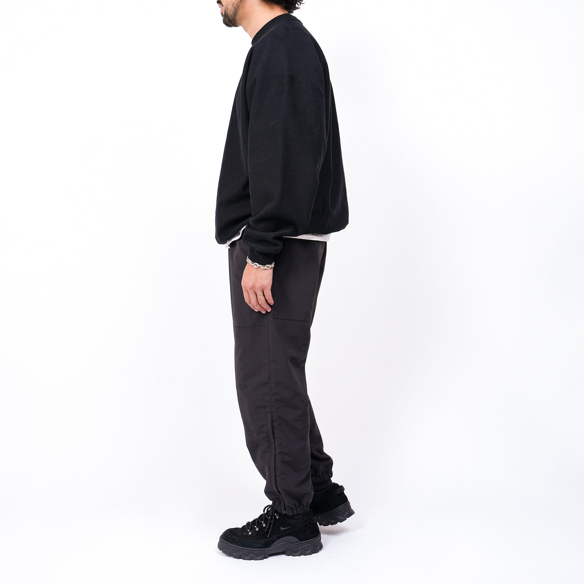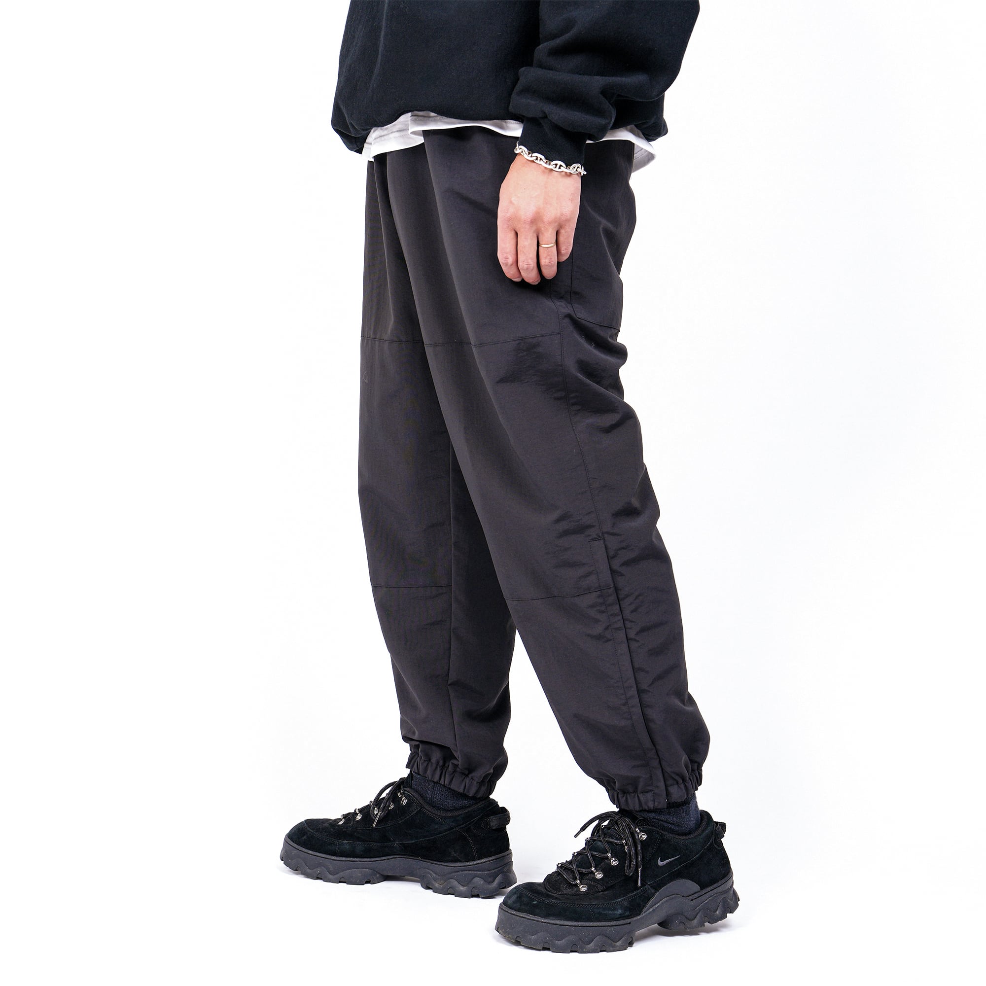 US ARMYの陸軍に支給されていたフィジカルトレーニングパンツをデザインソースとし、日本製の撥水加工を施したナイロン100%素材を用いたトレーニングパンツ。コットンライクな素材感でナイロン特有のシャカシャカした面を軽減し、大人の方が上品に楽しめる使用に。裏地のメッシュも吸水速乾性のある生地にし、春夏を快適に過ごせる一本に仕上げました。