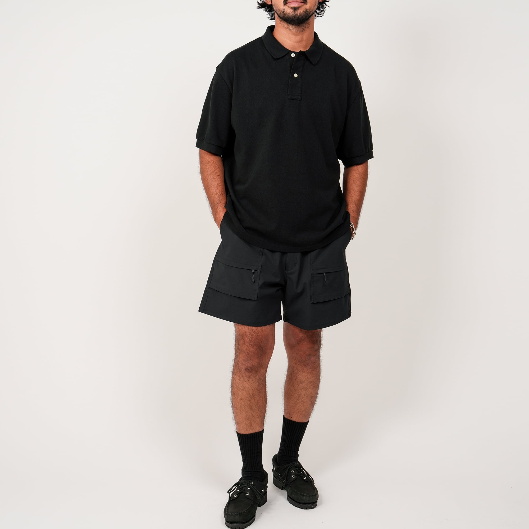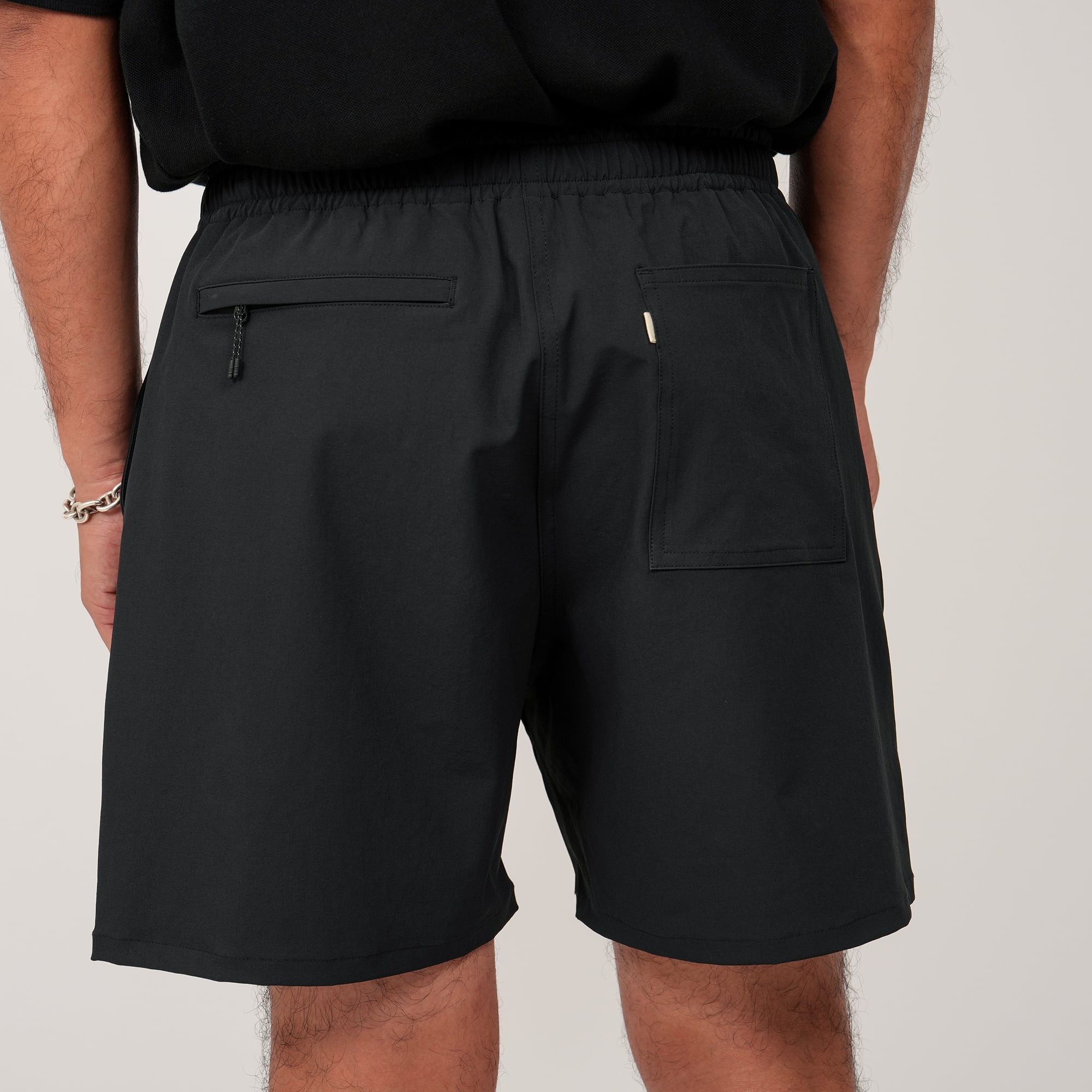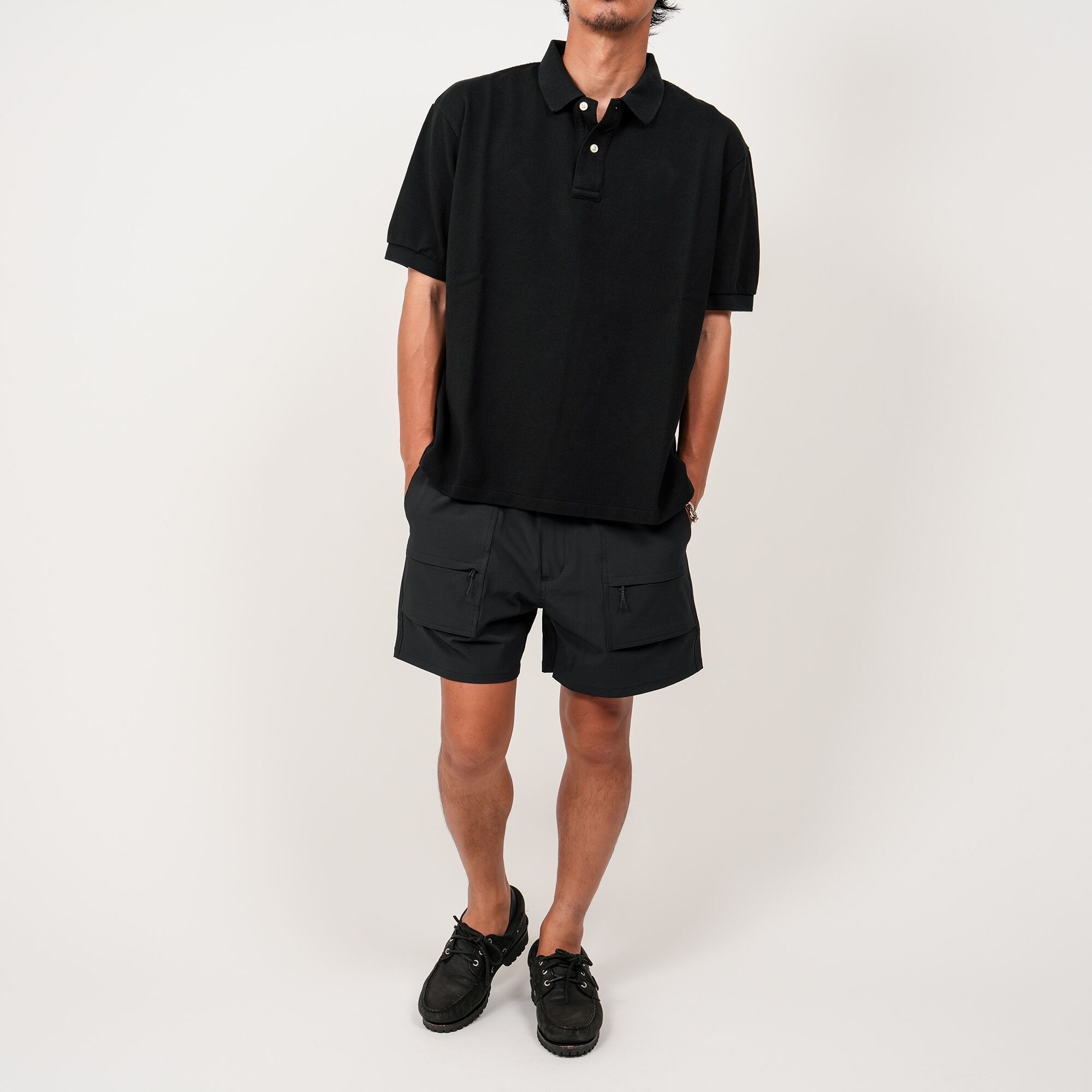 日本製ポリエステルを使用したアクティブショーツ。あらゆるシーンを想定し機能性に目向けたディティールで、撥水性や収納性・アクティブに動けるためのストレッチ性を高めたアイテム。